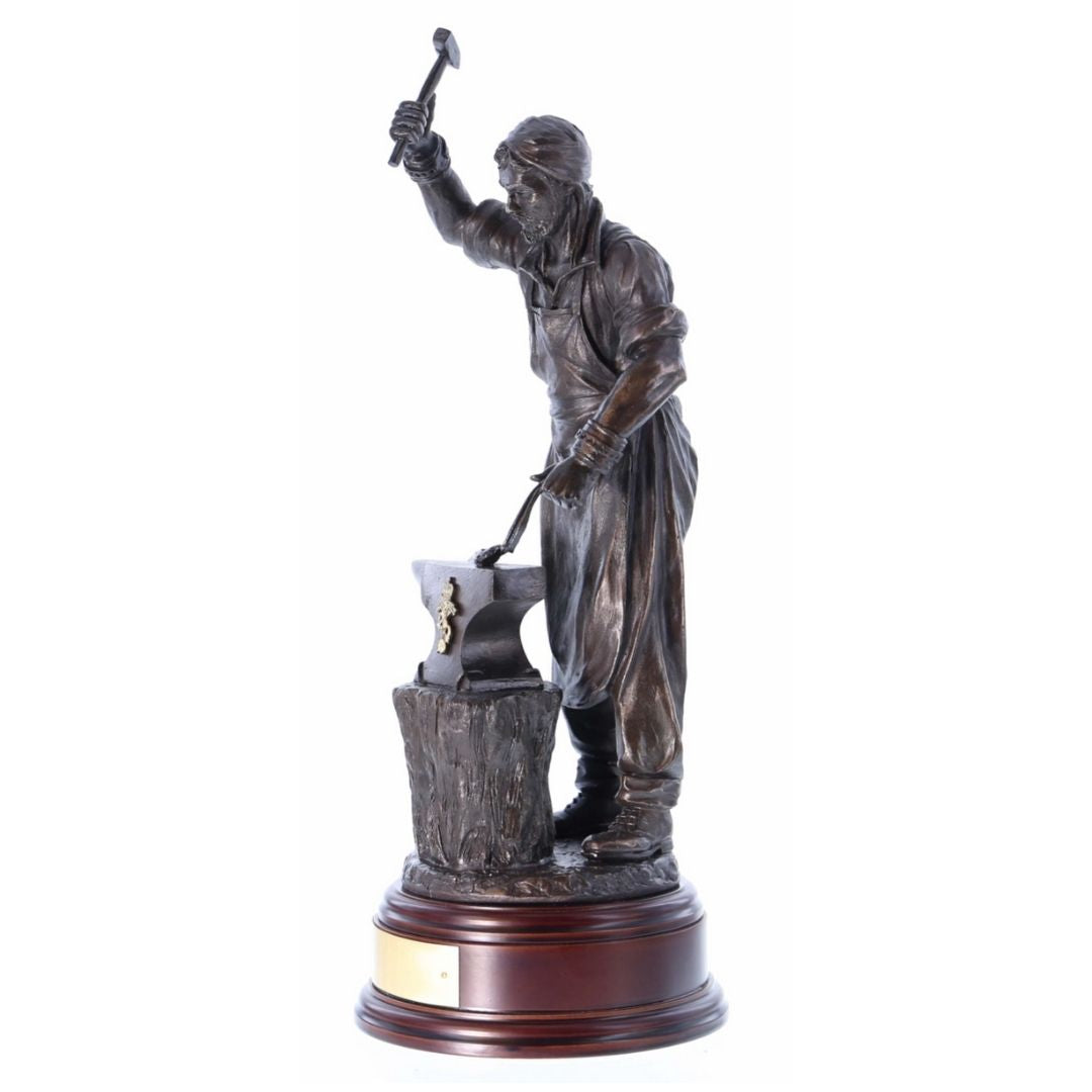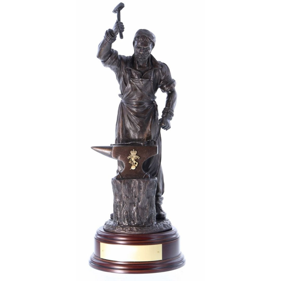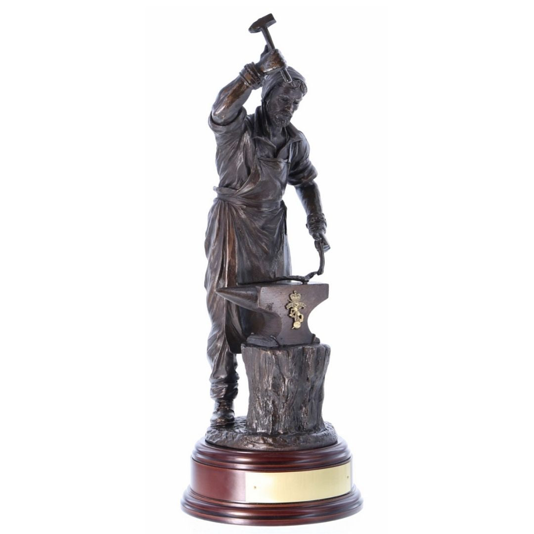 A detailed 12-inch sculpture of St Eligius, Patron Saint of REME, shown forging a sword blade.